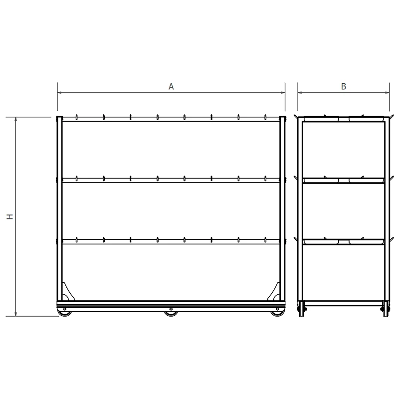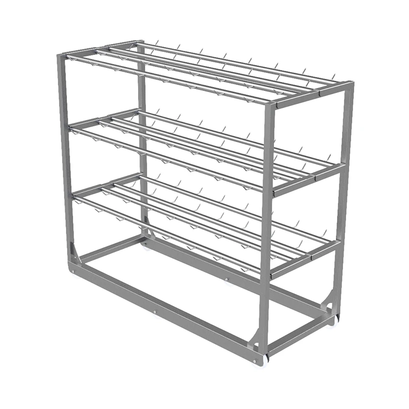 | Designação | Carro transporte de desmancha com 72 ganchos de 2 níveis | Carro transporte de desmancha com 96 ganchos de 3 níveis |