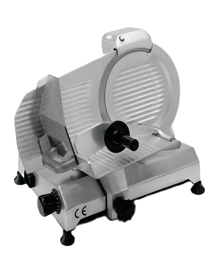 A máquina de fatiar de fiambre PXP-PS250E é um modelo acionado por correia para fatiar carne, queijo e outros produtos de charcutaria.